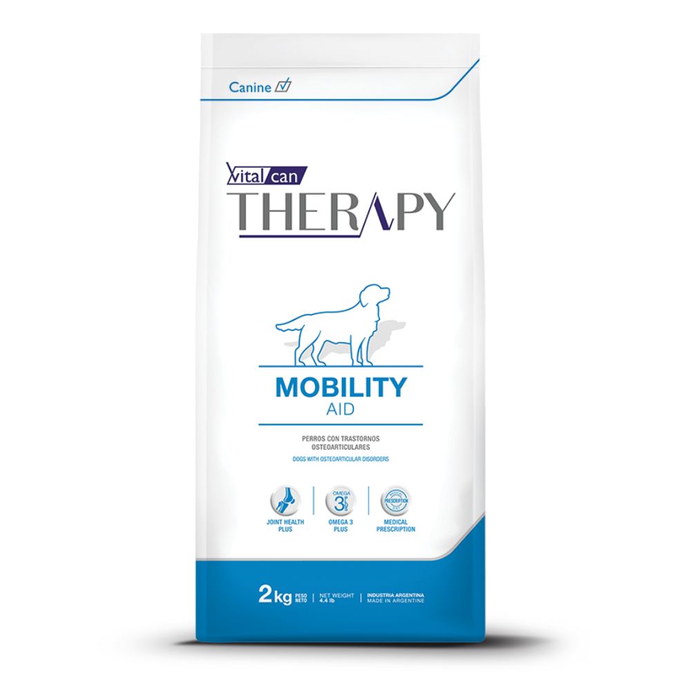 Vitalcan Therapy Mobility Aid para perros de todas las edades con problemas articulares, movilidad reducida o en recuperación postquirúrgica. Contiene glucosamina, condroitina y ácidos grasos Omega-3 que ayudan a mantener la salud de las articulaciones y reducir la inflamación. Enriquecido con antioxidantes para proteger los tejidos articulares del daño oxidativo.