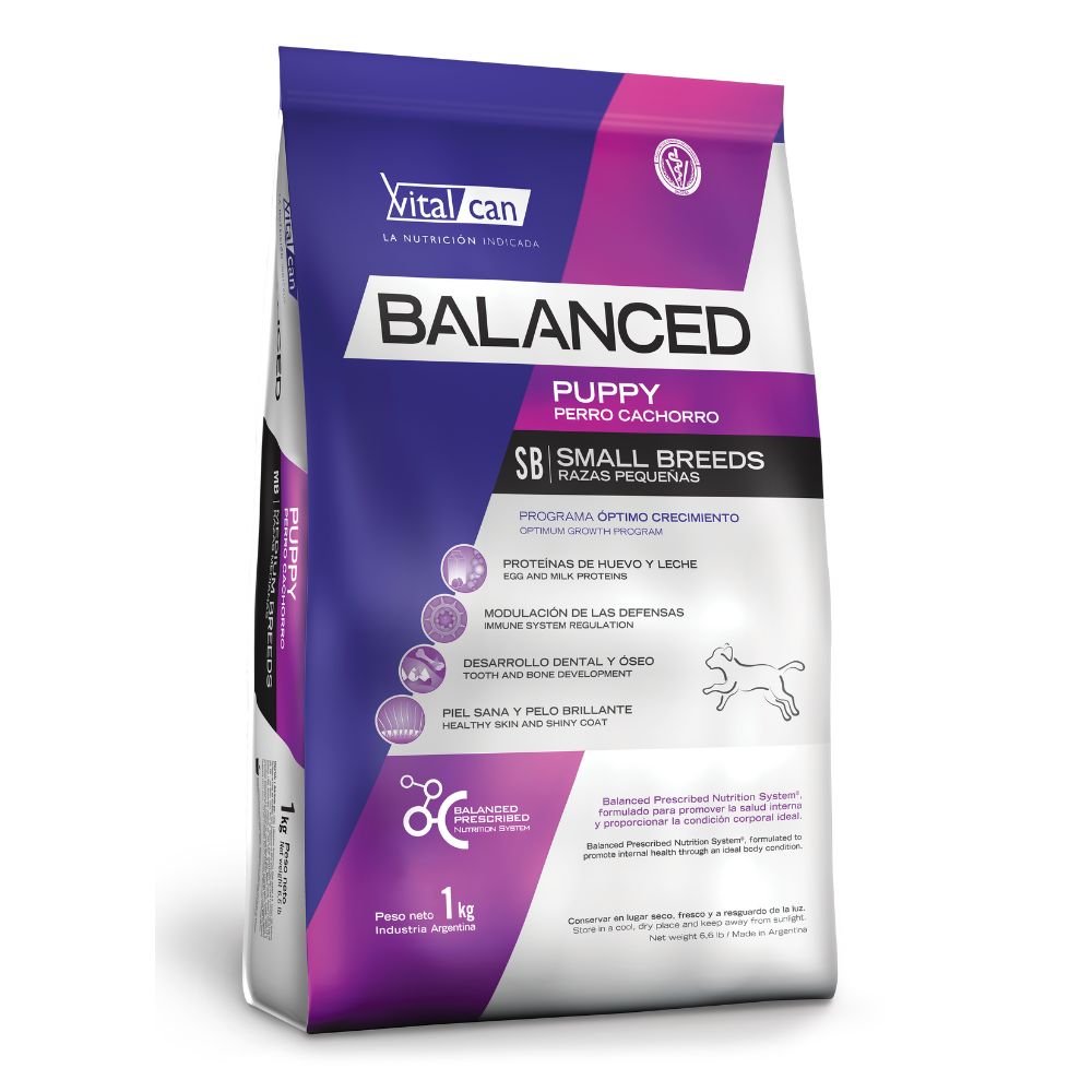 Vitalcan Balanced Puppy está diseñado para cubrir las necesidades nutricionales específicas de los cachorros de razas pequeñas. Su fórmula incluye proteínas de alta digestibilidad (pollo y huevo), DHA para el desarrollo cerebral, y antioxidantes naturales que promueven un sistema inmunológico fuerte. Además, contiene fibras naturales que favorecen una digestión saludable.