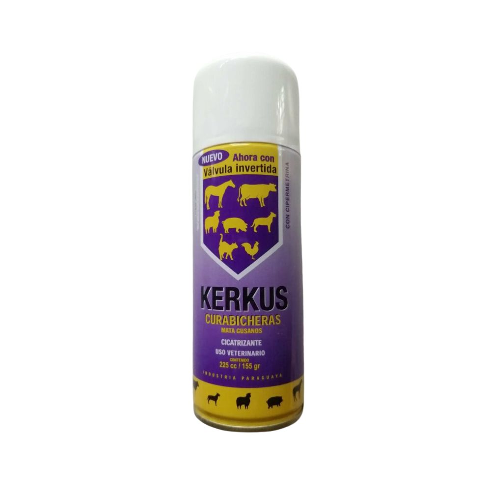 Aplique KERKUS® en aerosol a 5 cm de la herida, cubriendo totalmente la misma y las áreas circundantes. Utilice como preventivo en heridas recientes y/o agusanadas, en la castración, descole, descorne, marcación, heridas quirúrgicas y en el ombligo del animal recién nacido.