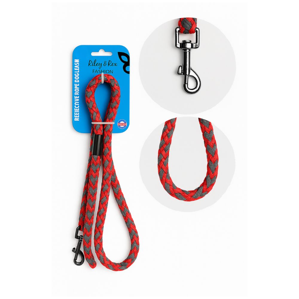 Riley & Rex Correa para Perro Reflectante Trenzada de Poliéster 4′ x 0,5″ (Rojo)